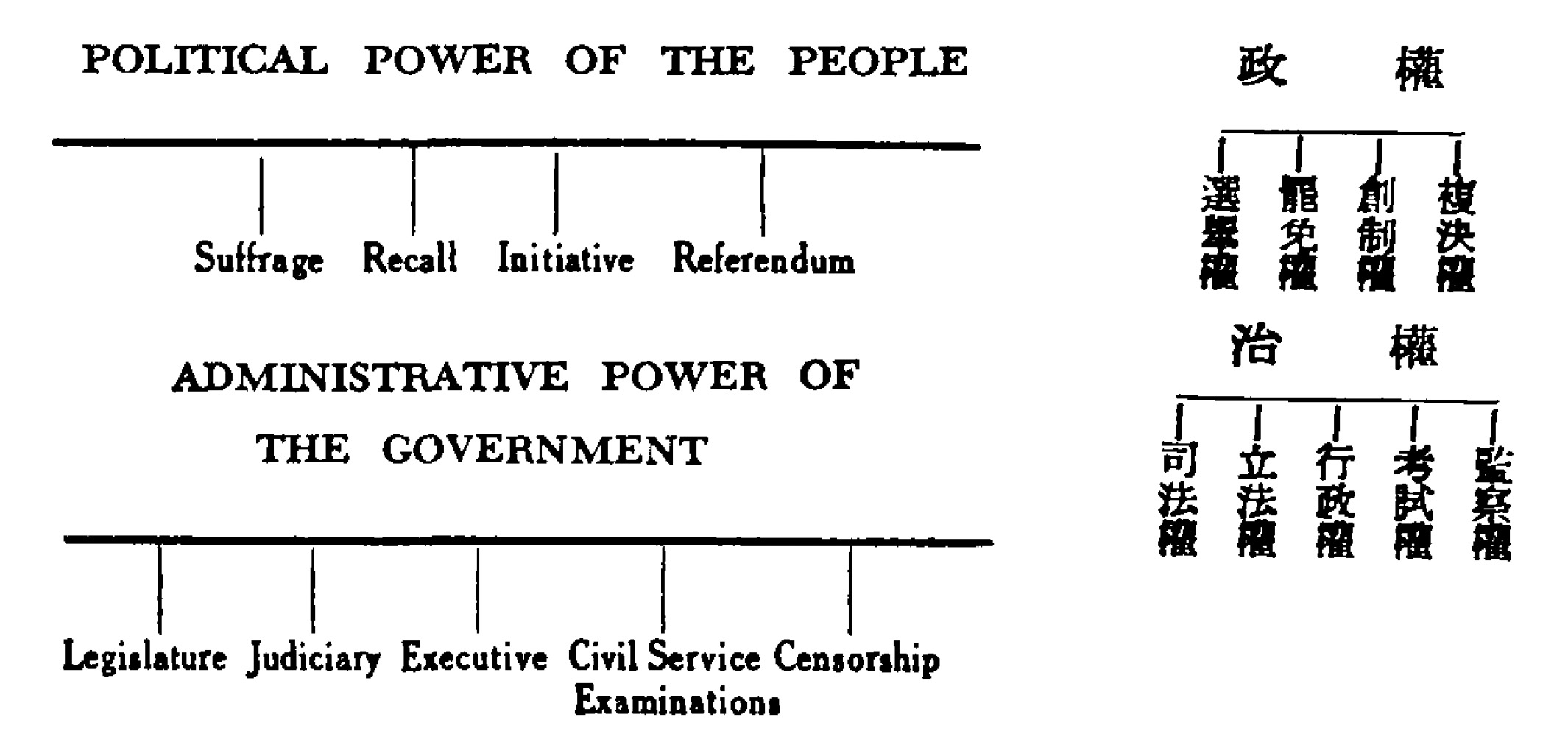 Sun Yet-Sen’s constitution: Four powers of the people + five branches of government